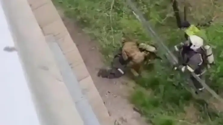 Сообщается, что спасатель использовал гибридный способ подъема к месту горения и не удержался. Его госпитализировали с переломом правой стопы. Начато служебное расследование.