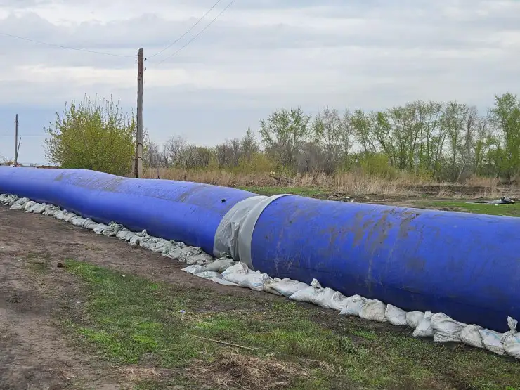 "В селе Ольшанка работают спасатели из Акмолинской и Костанайской областей. Они вот устанавливали водоналивные дамбы - 12 штук по 25 метров. Продолжаем укреплять и земляные валы: один длиной 2,7 километра, другой - 2,5 километра. В Ольшанке проживают 207 человек, 72 двора. В прошлом году деревню затапливало, в этом году пытаемся спасти, чтобы эвакуации не было", - сообщил аким Якорьского сельского округа Валерий Тихий.