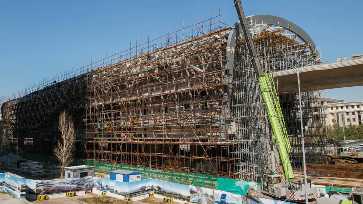 На территории депо с центром управления Олжас Бектенов ознакомился с ходом строительно-монтажных работ. Проект реализуется совместно с китайскими партнерами – China Railway Asia-Europe Construction Investment Co., Ltd.