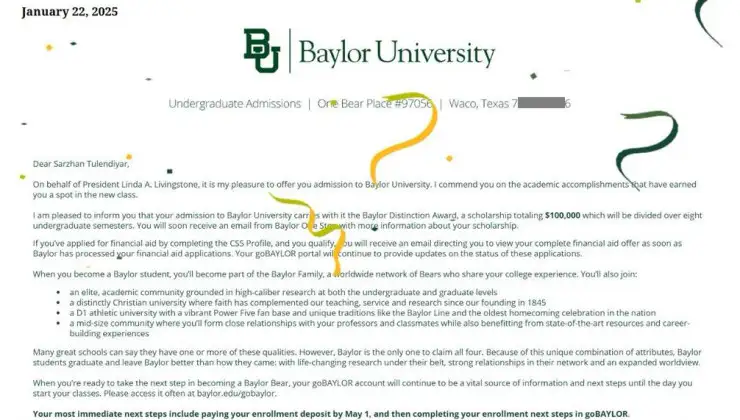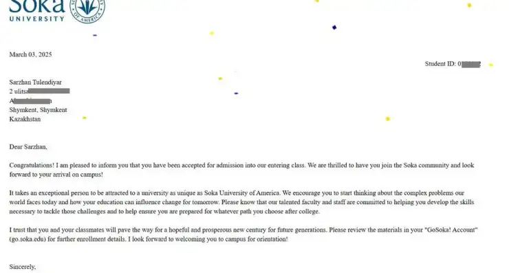 Поступление в зарубежные вузы — это довольно долгий и сложный процесс. Тут нужно пройти через множество разных этапов: написать эссе, сдать экзамены, собрать рекомендации, заполнить анкету и многое другое. Каждый шаг требует времени и внимания. Санжар отметил, если отнестись к этому серьезно, то можно преодолеть все.