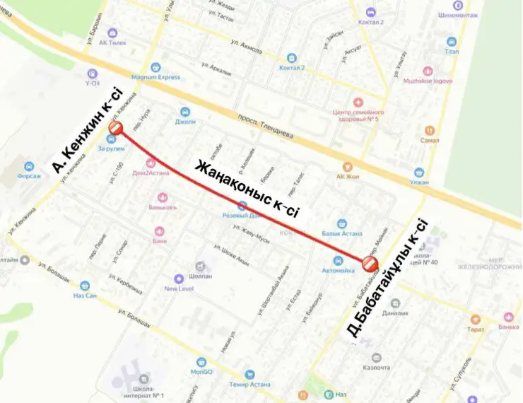 По данным акимата, работы будут проводиться на участке между улицей Бабатайулы и проспектом АКенжина. Движение будет полностью перекрыто 8 и 9 мая.