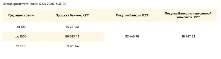 На одном из крупнейших банков страны цена на грамм золота уже достигла 60 241 тенге.