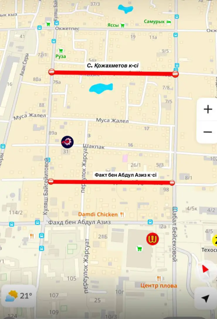 Также с 9 по 19 мая на проспекте Жумабаева проходят ремонтные работы на участке между улицей Балкантау и проспектом Момышулы.