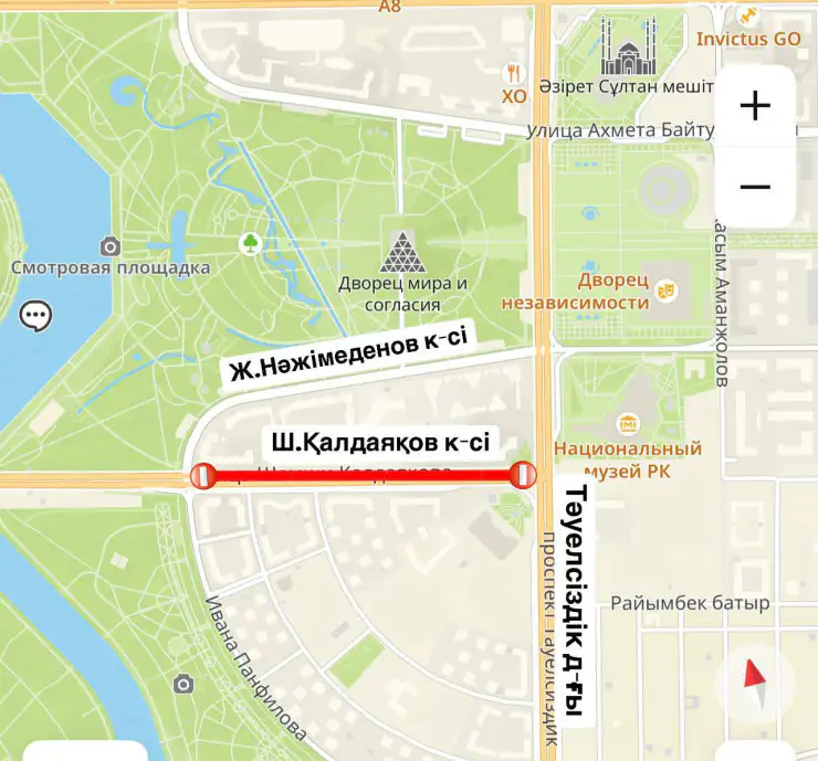 Так же отмечаем, что улицы Фахт бен Абдул Азиз и Кожахметова - от улицы Бейсековой до улицы Байсеитовой закрыты из-за ремонта.