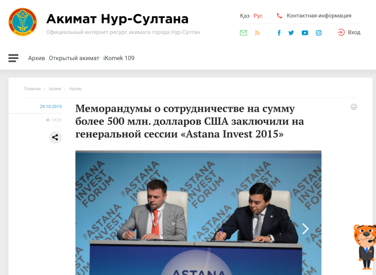 Скрин сохраненной Google-копии архивного сайта акимата столицы, сделанный в марте 2021 года. В настоящее время страница недоступна даже в архивной копии