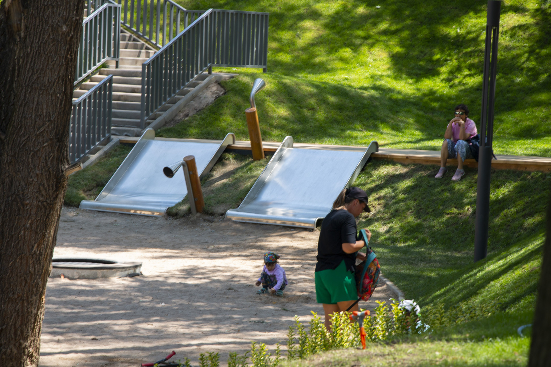 Несмотря на завершение работ, в некоторых местах парка все еще можно увидеть провода, которые торчат из земли. В некоторых случаях это отдельные кабели, а в других — целые мотки проводки, оставленные вдоль дорожек.