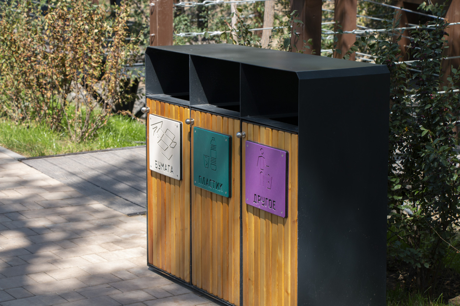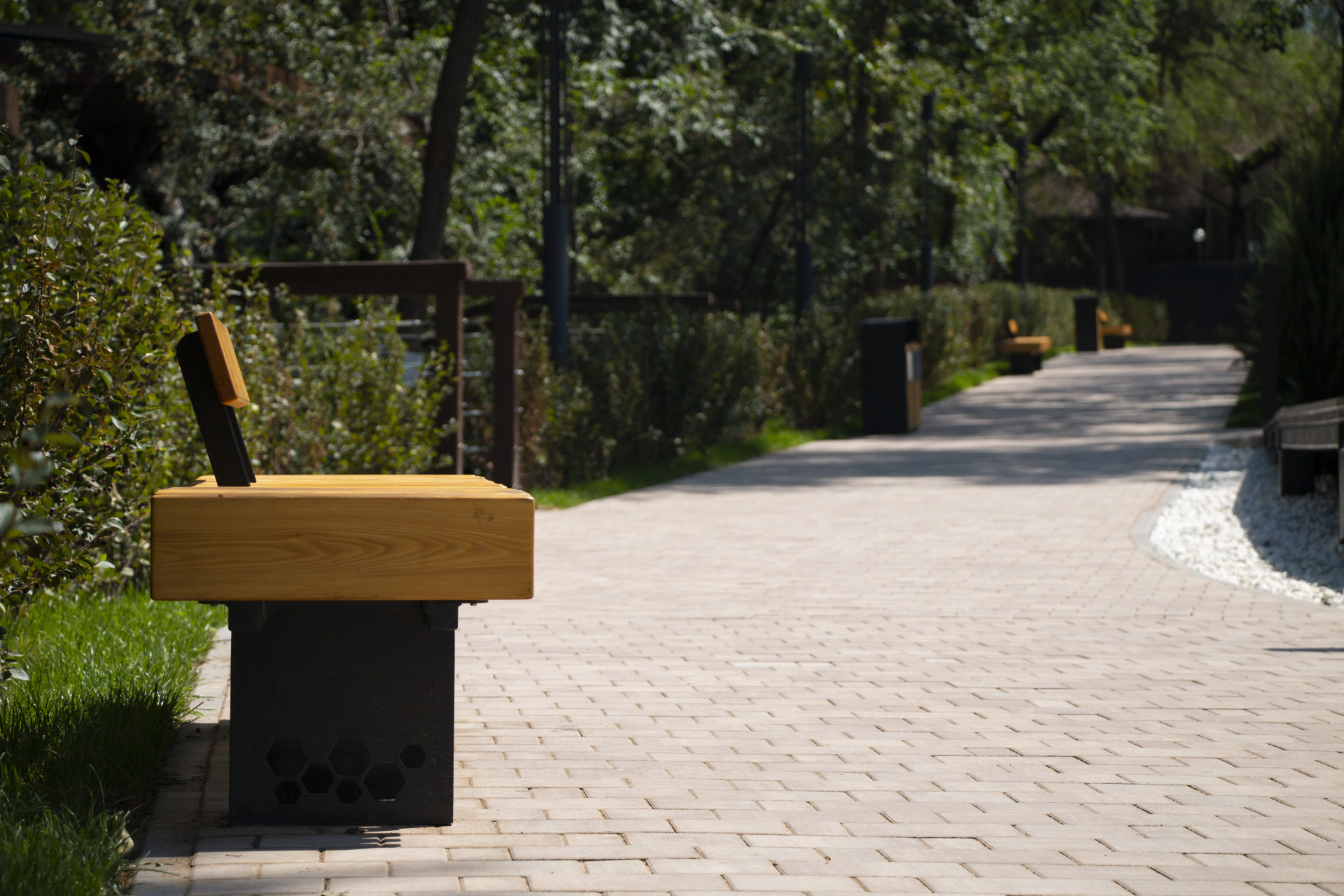 Новые скамейки выглядят стильно, хотя их эргономичность вызывает сомнения. Также появились современные экологичные урны для раздельного сбора мусора.