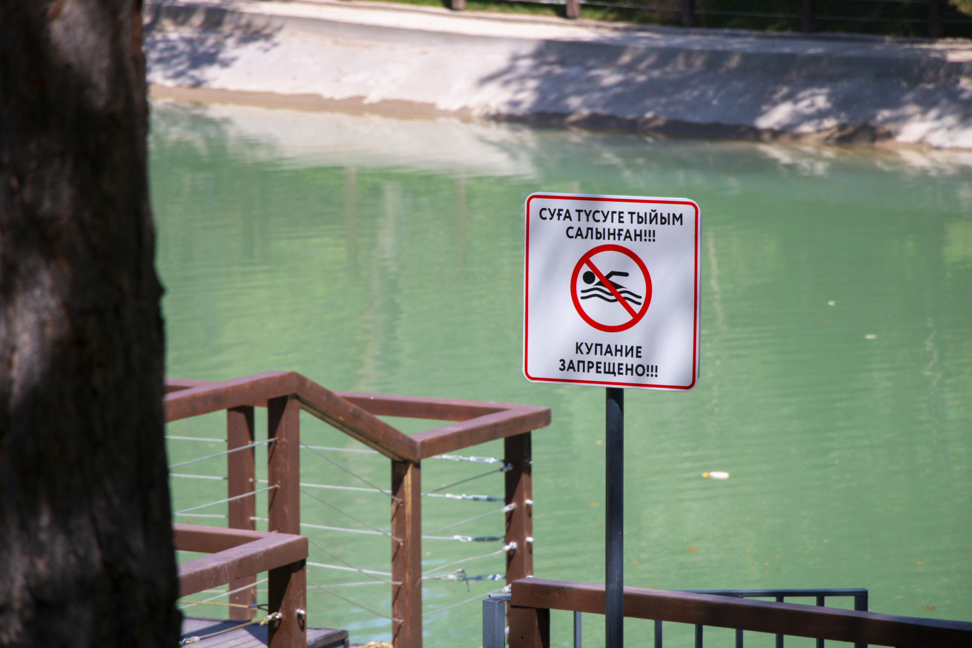Однако в водоеме, где раньше обитали утки, их теперь нет, а купание запрещено. Ранее к воде вели бетонные ступени.
