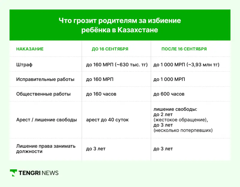 Также с 16 сентября в Уголовном кодексе Казахстана вступают в силу поправки, которые ужесточают ответственность родителей и опекунов за ненадлежащее исполнение обязанностей по воспитанию детей.