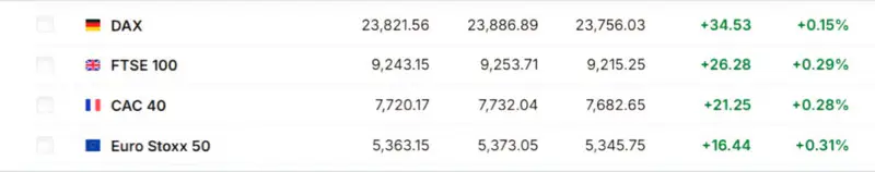 Европейские рынки также показали положительную динамику.