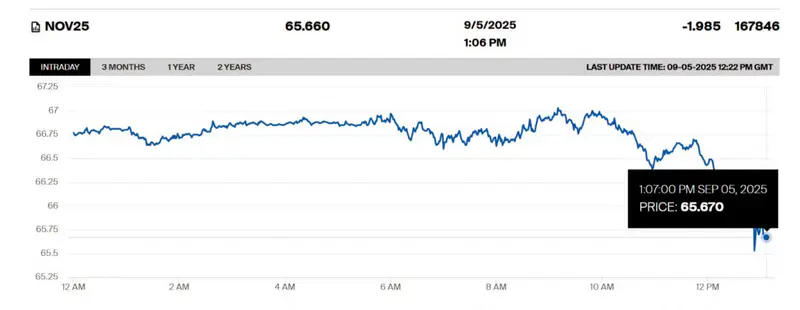 - Цена ноябрьских фьючерсов на нефть марки Brent снизилась на 1,98% - до 65,66 доллара за баррель.