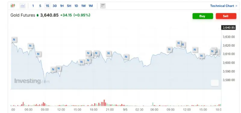 - Фьючерс на золото повысился на 0,95% - до 3 640,85 доллара за унцию.
