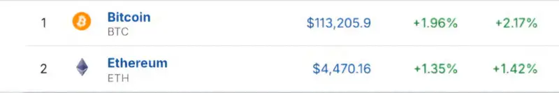 Bitcoin (BTC) подрос на 2,16%, Ethereum (ETH) - на 1,55%.