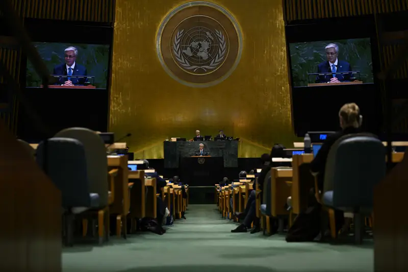 "Мы будем твердо следовать выбранному курсу, углубляя реформы государственного управления внутри страны и поддерживая глобальное управление за ее пределами. Казахстан продолжит выступать в роли посредника и миротворца. Наш выбор – баланс, а не доминирование, сотрудничество, а не конфронтация, мир, а не война", - заявил с трибуны ООН Касым-Жомарт Токаев.
