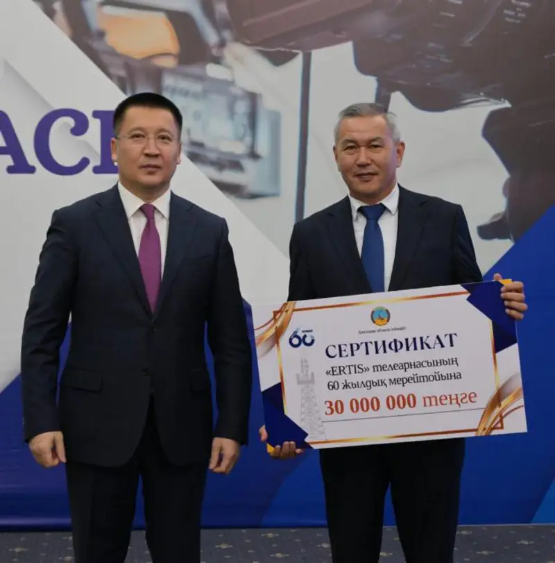 Также Байханов вручил сертификат на 30 миллионов тенге в честь 60-летия областного телеканала Ertis.