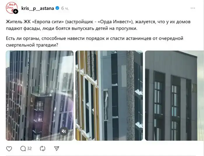 Облицовка зданий в Астане вновь обрушилась: Аким ответил на растущие жалобы о трещинах и проблемах в ЖК