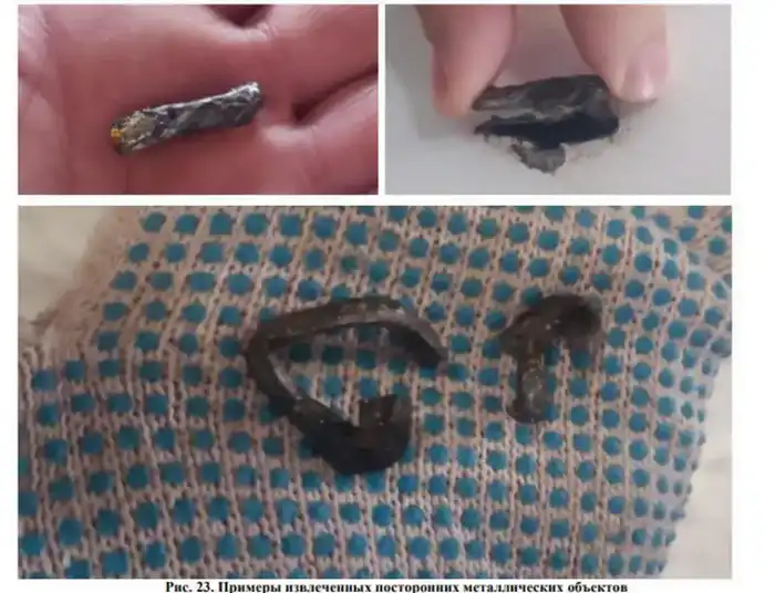 В рамках расследования были проведены комплексные экспертизы посторонних металлических предметов (внешних объектов). По их результатам следов взрывчатых веществ не обнаружено, на трёх кислородных баллонах следов взрыва не имеется.