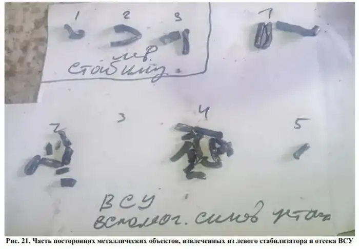 "Повреждения воздушного судна предположительно были вызваны поражающими элементами боевой части, однако их принадлежность установить не удалось".