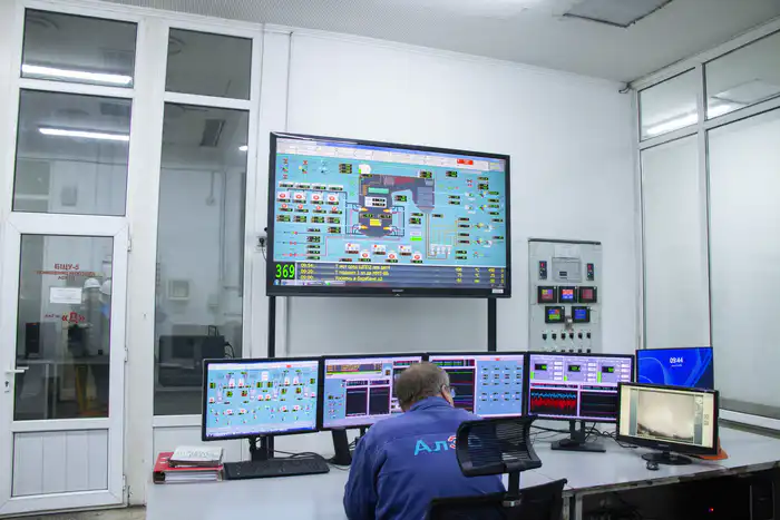 В комнате управления диспетчеры контролируют выработку тепловой энергии и следят за состоянием всех цехов. Здесь находятся старые щиты управления и современные компьютеры, которые управляют новым котлом, запущенным в 2016 году.