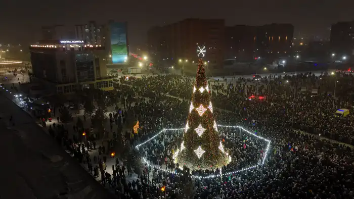 В Актобе главной площадкой празднования стал район стелы "Қазақ халқына мыңалғыс". Тысячи жителей собрались здесь, чтобы встретить Новый год вместе. В полночь они посмотрели новогоднее обращение Президента, а затем поздравляли друг друга и наслаждались фейерверком.
