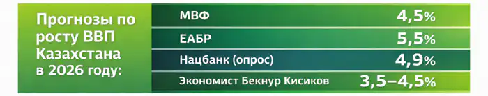 По росту казахстанского ВВП в 2026 году прогноз Кисикова такой: в районе 3,5–4,5 процента.
