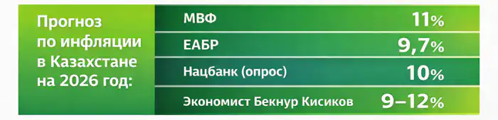 "В целом инфляция может замедлиться во втором полугодии 2026 года, но она всё-таки останется двузначной. Пиковое давление придётся на начало года из-за НДС и возможного роста тарифов. Это окажет сильное влияние. Но в этом году Нацбанк показал, что он может сдерживать инфляцию. И мы знаем, что во второй половине 2025 года удалось немного затормозить инфляцию", ― считает Кисиков.
