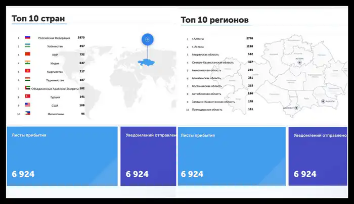 Согласно данным системы eQonaq, с 30 декабря по 4 января в Казахстан прибыло 6 924 иностранных туриста.