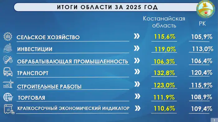 По итогам 2025 года экономика Костанайской области ожидает рост не менее 8 процентов, что превышает среднереспубликанский показатель. Об этом сообщил аким области Кумар Аксакалов на совещании, посвященном итогам социально-экономического развития региона.