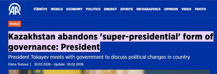 Китайские медиа, такие как Xinhua, Global Times и People's Daily, также активно освещают политические реформы в Казахстане. Они подчеркивают отказ от суперпрезидентской формы правления как ключевое изменение.
