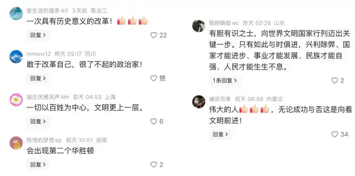 Китайские пользователи сети в комментариях под публикациями выражают поддержку реформам в Казахстане, отмечая важность возвращения власти институтам и стремление к совершенствованию.