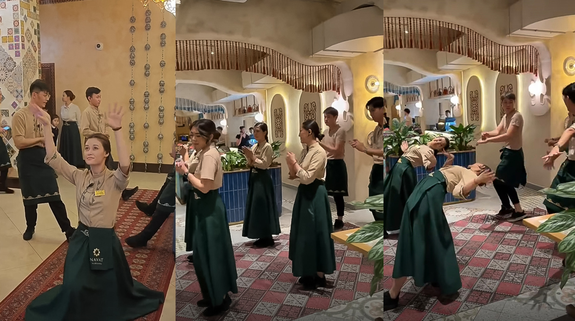 Танцы официантов в ресторане NAVAT. Скриншоты из социальных сетей