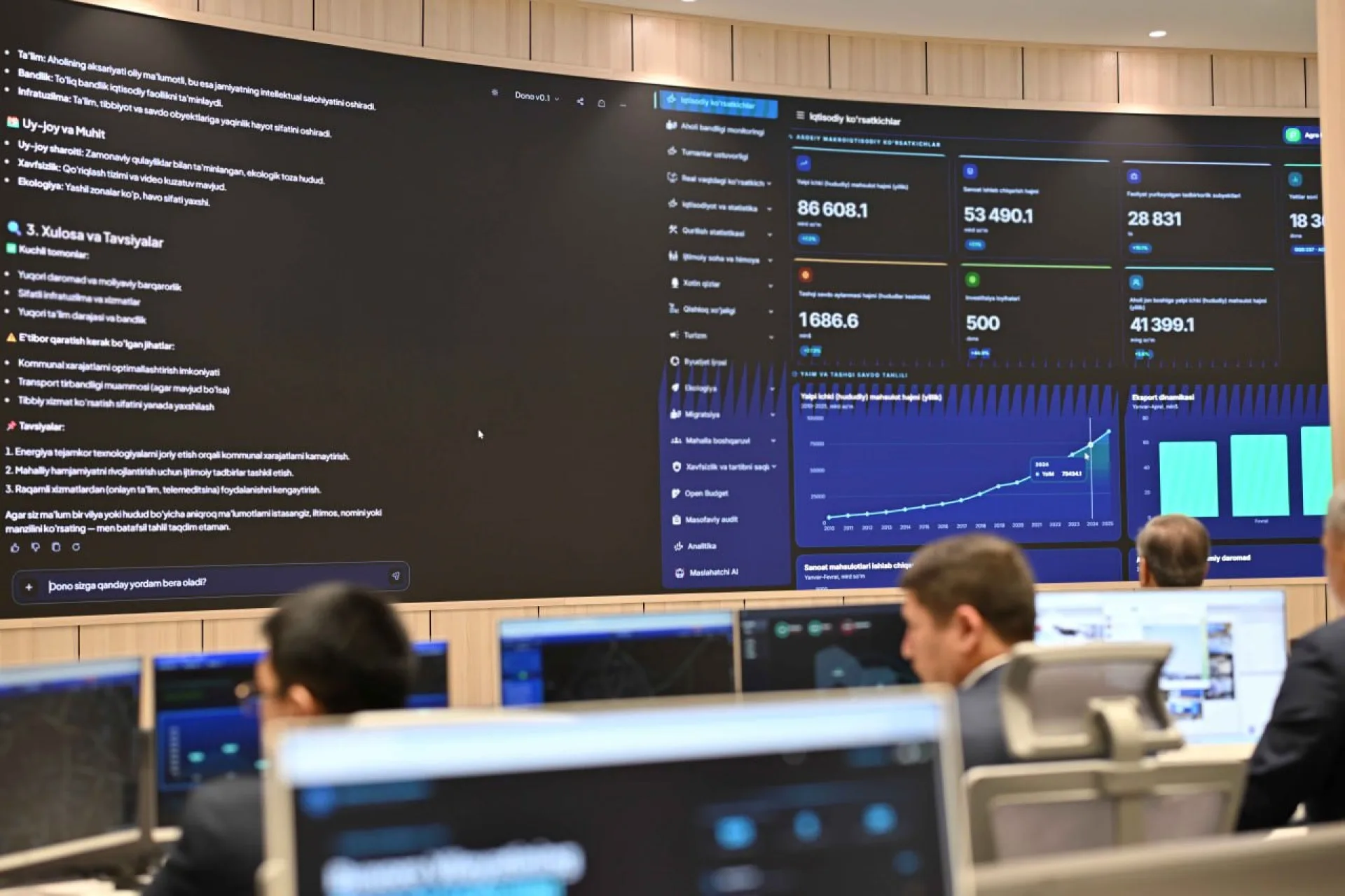 Президенты Казахстана и Узбекистана, Касым-Жомарт Токаев и Шавкат Мирзиёев, посетили Ситуационный центр в Бухаре. Это учреждение осуществляет круглосуточное наблюдение за состоянием инфраструктуры, жилищно-коммунального хозяйства, транспортных систем, служб безопасности и природных процессов в регионе.
