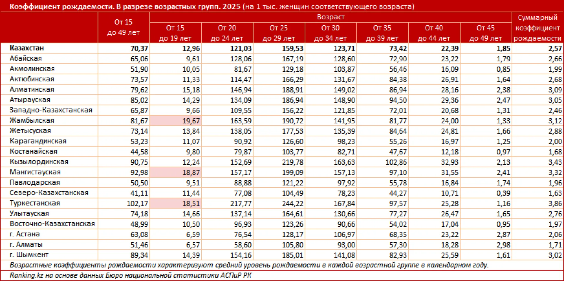 Аналитики подчеркивают, что высокая общая рождаемость в регионе не всегда указывает на большое количество родов среди подростков. Например, в Кызылординской области общий уровень рождаемости один из самых высоких в стране: