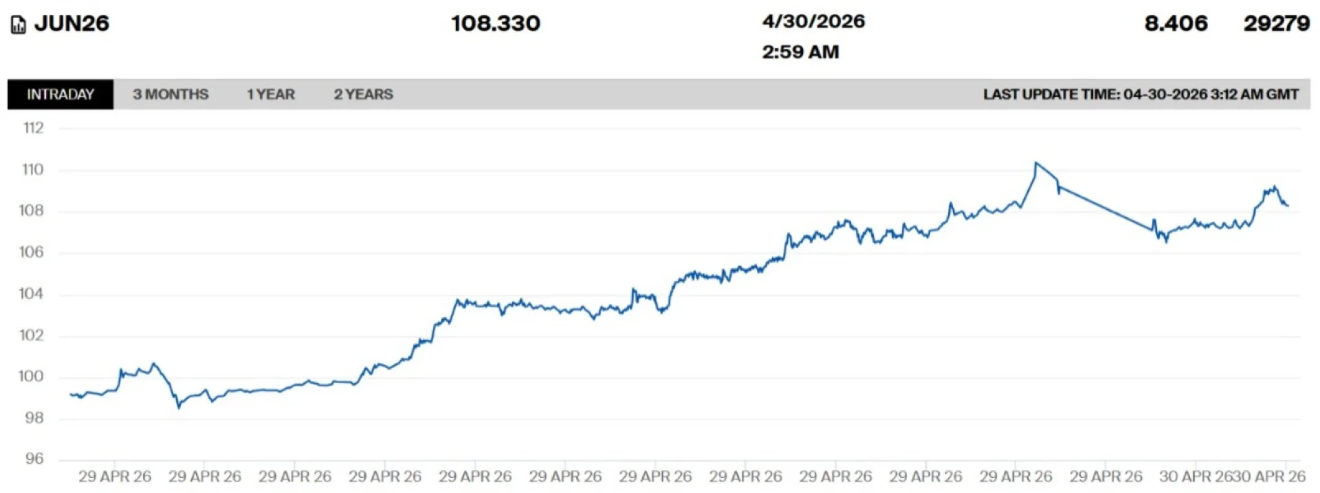 Стоимость июньских фьючерсов на нефть марки WTI также увеличилась на 8,40 процента, достигнув 108,33 доллара за баррель.